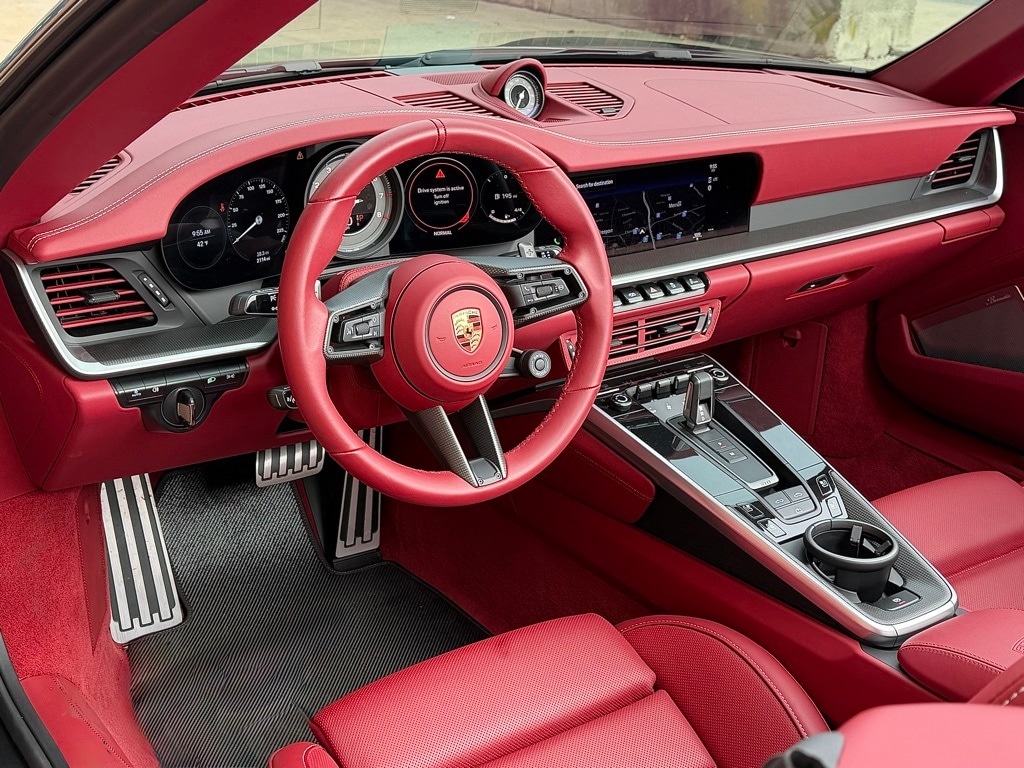 - 992650 911 Turbo S Cabriolet (MY24) $243200 KL Leather Interior in Bordeaux Red with Chalk Stitching A1 Black P85 Exterior Package Painted $3000 6FQ Exterior Mirror Upper Housing in Carbon Fiber and Lower Trim/Base in High Gloss Black $1630 ID0 Window Triangle Trims in Carbon Fiber $500 UD1 Under Door Puddle Light Projectors $160 JL2 Engine Compartment Cover in Titanium Grey $460 2W6 Exclusive Design Fuel Cap 6BB Rear Lid Grille Vertical Slat Inlays in Exterior Color $720 ABW Model Designation on Rear in Exterior Color $270 1BV PASM Sport Suspension (Lowered 10mm) $1510 2UH Front Axle Lift System $2770 0P9 Sport Exhaust System incl. Tailpipes in Black $3490 1N3 Power Steering Plus $280 1LX Porsche Ceramic Composite Brakes (PCCB) with Calipers in High Gloss Black $900 3J7 Porsche Crest on Headrests (Front) $290 AVC Air Vent Surround and Air Vent Slats in Leather - Bordeaux Red $1570 2PF Heated GT Sport Steering Wheel with Trim in Matte Carbon Fiber $680 2TC Sport Seats Plus Backrest Shells in Leather with Matte Carbon Fiber Inlay $2590 4D3 Ventilated Seats (Front) $840 2C8 Steering Column Casing in Leather i.c.w. Memory Package $520 7F4 PDK Gear Selector in Aluminum $750 5HD Extended Dashboard and Door Panel Package in Leather $3440 QE1 Storage Package P19 Pedals and Footrest in Aluminum $630 7M8 Door-Sill Guards in Matte Carbon Fiber Illuminated $1280 5XZ Sun Visors in Leather $590 AVX Upper Interior Mirror Panel in Leather - Bordeaux Red $390 6E2 Center Console Lid with Porsche Crest $340 AVV Fuse Box Covers in Leather - Bordeaux Red $340 ATG Inner Door-Sill Guards in Leather - Bordeaux Red $660 ACJ Carbon Fiber Floor Mats with Leather Edging - Bordeaux Red $1020 ALB Passenger Cupholder Trim in Leather $310 9VJ Burmester High-End Surround Sound System $3980 0PA Preparation for Deletion of Model Designation AKS Preparation for Airblades in High Gloss Black AKT Preparation for Air Intakes in High Gloss Black AKW Preparation for Air Outlets in Exterior Color 8JU LED-Matrix Design Headlights in Black incl. Porsche Dynamic Light System Plus (PDLS+) $750 8VH Exclusive Design Taillights $990 9R1 Night Vision Assist $2540 7Y1 Lane Change Assist (LCA) $1060 KA6 Surround View $1430 2V4 Ionizer $350 QQ2 Ambient Lighting $580 P60 Lane Keep Assist (LKA) incl. Traffic Sign Recognition $1220 9JD Smoking Package 8T3 Adaptive Cruise Control (ACC) $2000